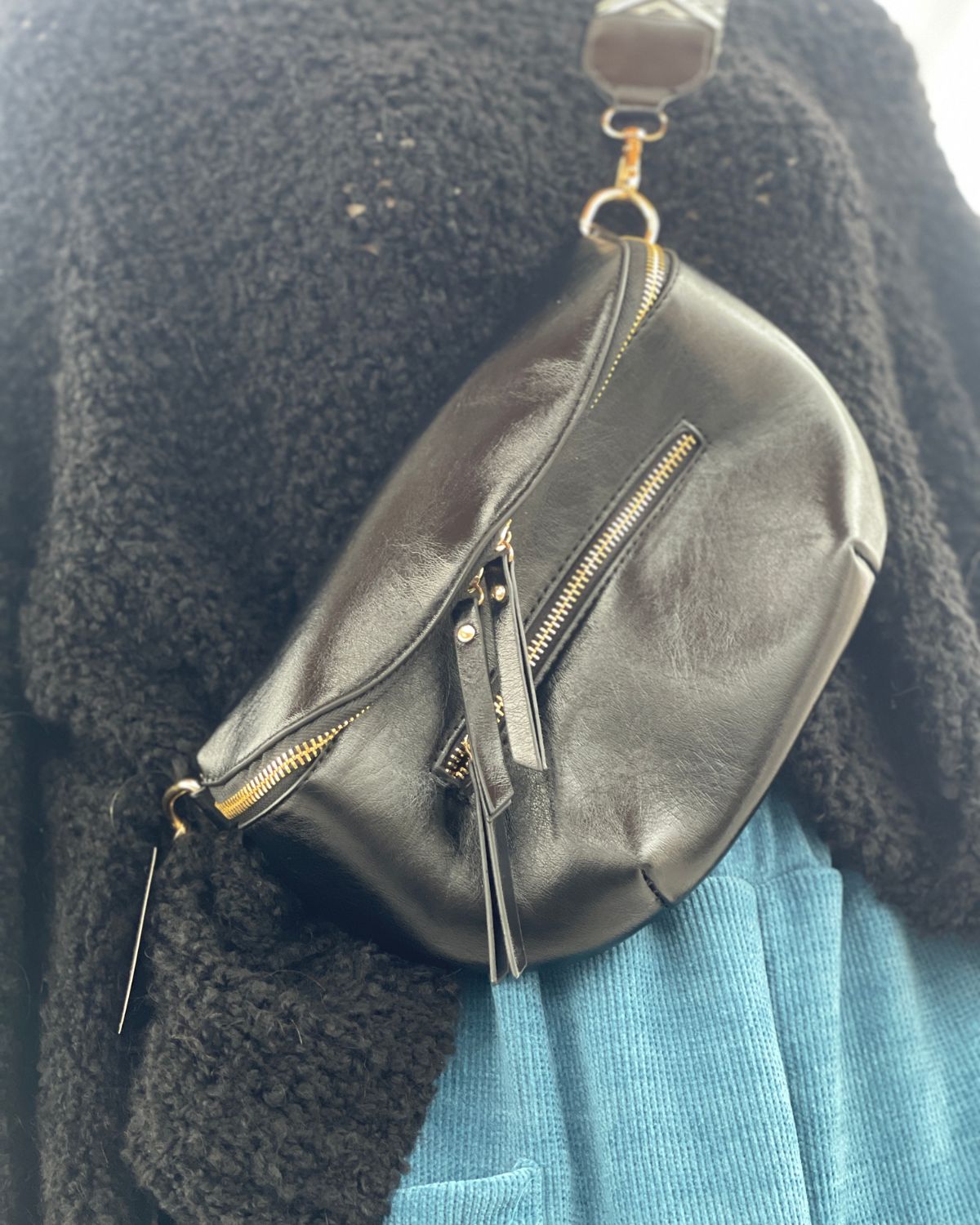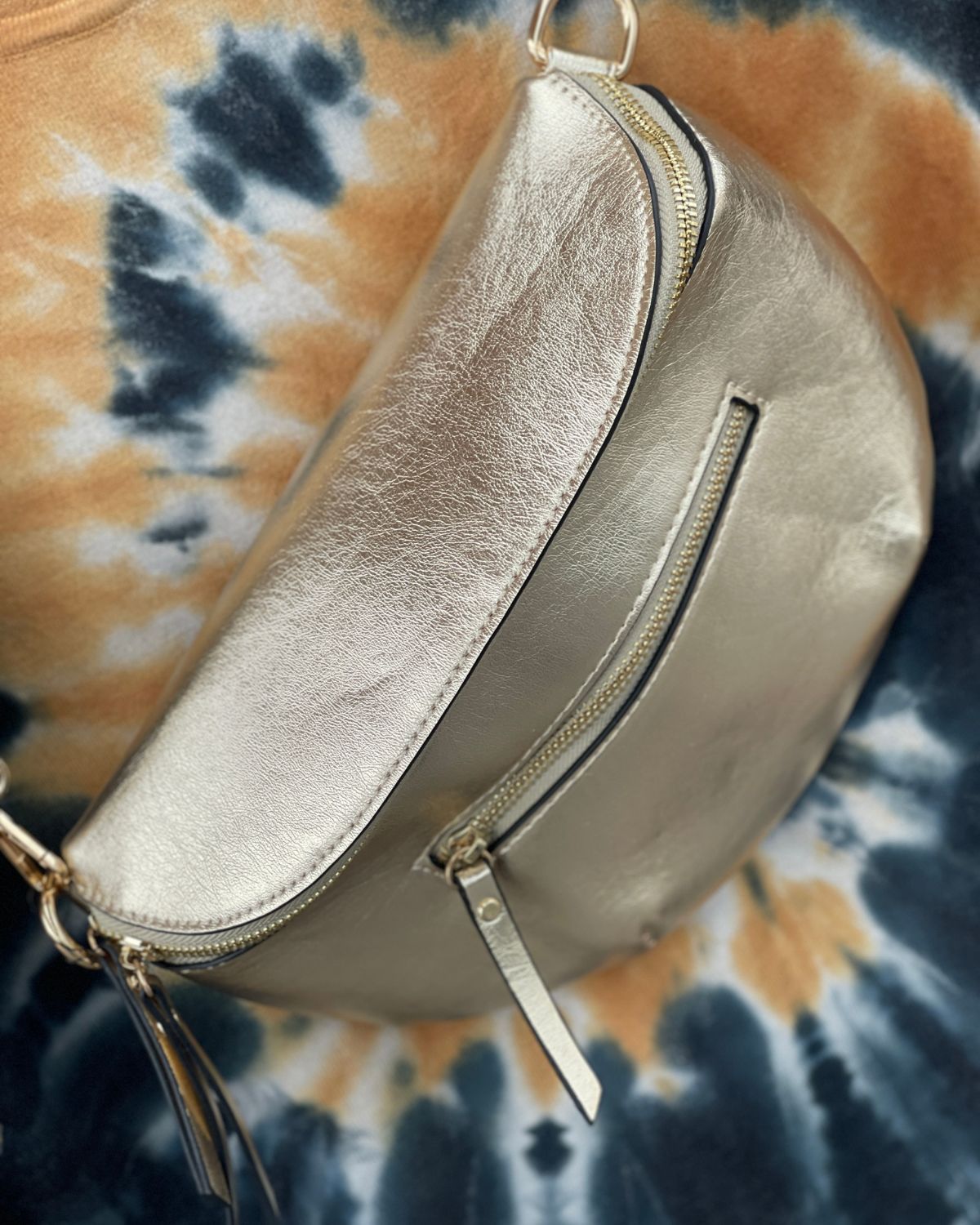 Sac banane irisé, très « In » cette année, poche avant et arrière, poche plate intérieure, fermeture zip, bandoulière assortie, on les adore!!!!